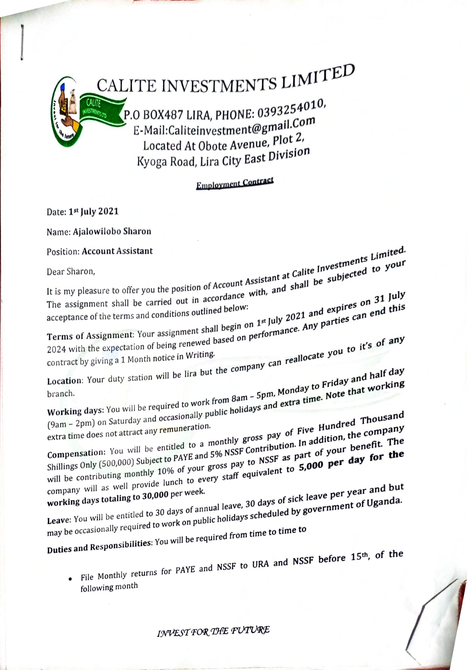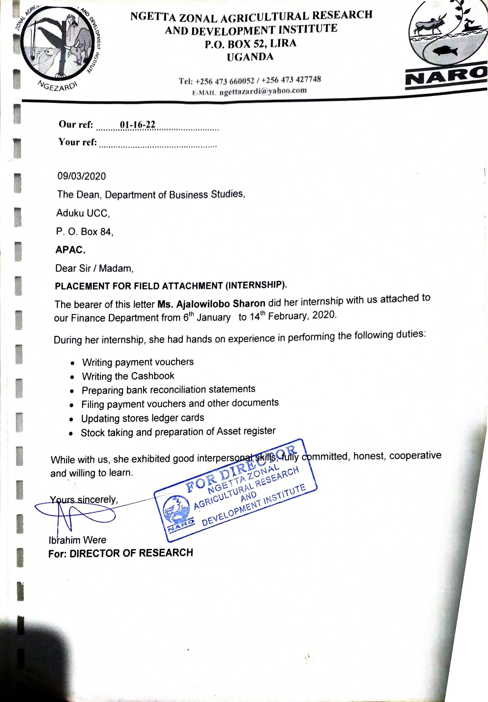 Writing and filing payment vouchers. Writing cash book. Preparing bank reconciliation statements . Updating store ledger cards. Stock taking and preparation of asset register.